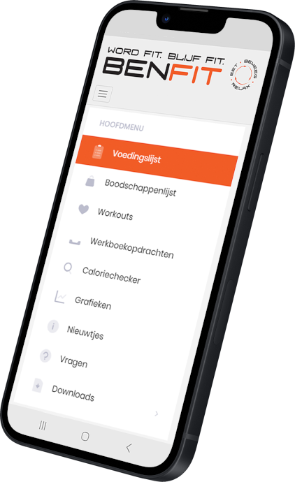 Ontdek gezonde voeding met BenFit! Bij al onze aangeboden pakketten krijg je volledige toegang tot de BenFit app. Hiermee wil ik je graag ondersteunen bij het bevorderen van een gezonde levensstijl, omdat deze meer omvat dan alleen maar beweging.